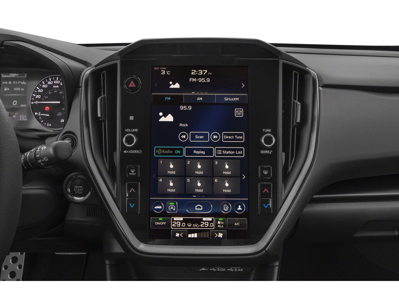 - Radio: Subaru STARLINK 11.6" Multimedia Plus Sys -inc: valet mode, AM/FM stereo, HD Radio, multi-touch gesture high resolution display screen, voice activated controls, Bluetooth® audio streaming and hands-free phone connectivity, Bluetooth® hands-free SMS text messaging connectivity, iPod control capability, rear-vision camera display, SiriusXM All Access radio (4 months free trial/subscription required after), SiriusXM Travel Link (4 months free trial/subscription required after), smartphone integration: Android Auto, Apple CarPlay, STARLINK cloud applications, 6 speakers, 3.5mm auxiliary input jack, illuminated/dual USB A and C input charge ports, roof mounted antenna and audio/satellite connected services